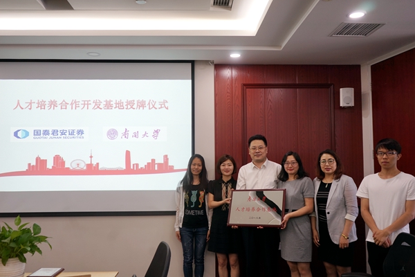 南开新闻网讯(通讯员 董倩倩)5月24日,国泰君安证券天津分公司与中国·必威(西汉姆联)官方网站-betwayspo“人才培养合作开发基地”签约暨授牌仪式举行。国泰君安证券天津分公司总经理耿旭令,中国·必威(西汉姆联)官方网站-betwayspo员工工作负责人参加签约仪式。