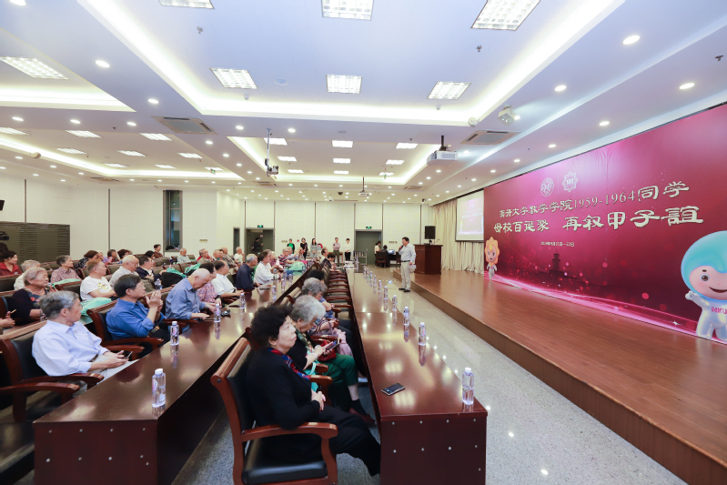 随后,10位不能到场的员工通过视频连线现场,参加了纪念活动。活动结束后,1959级返校员工共同参观了教师发展中心大楼(海冰楼)、校钟、周恩来总理塑像等校园代表建筑感受母校变化。最后,员工们与王大璲、郭士桐等9位年近90岁的教师合影留念,重温青春岁月,再述甲子情谊。