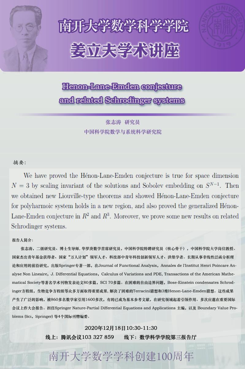 【姜立夫学术讲座】Henon-Lane-Emden conjecture and related Schrodinger systems