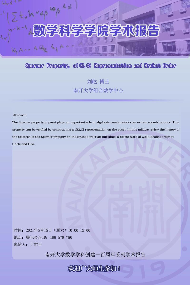 Sperner Property, sl(2,C) Representation and Bruhat Order