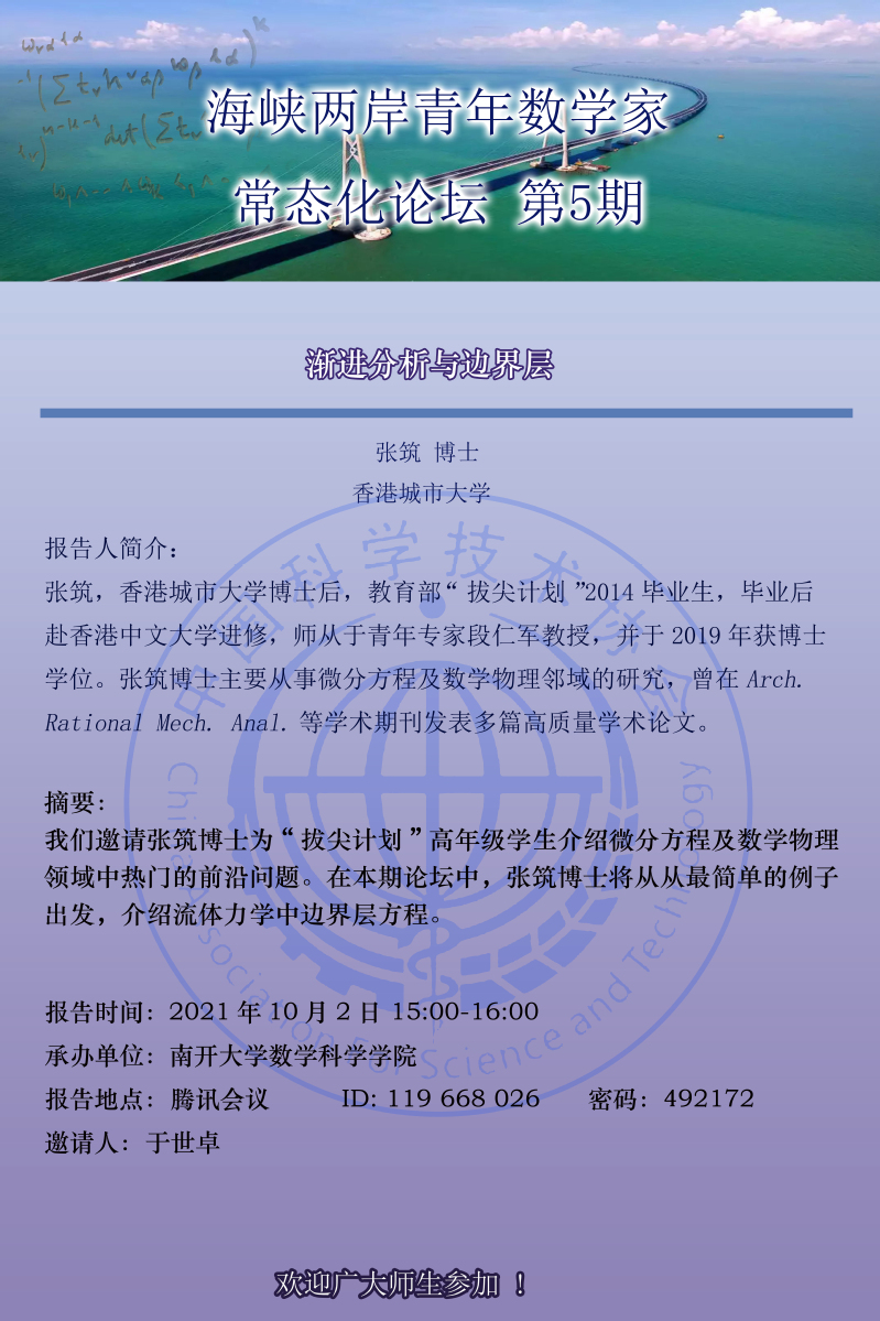 【海峡两岸青年数学家常态化论坛】渐近分析与边界层