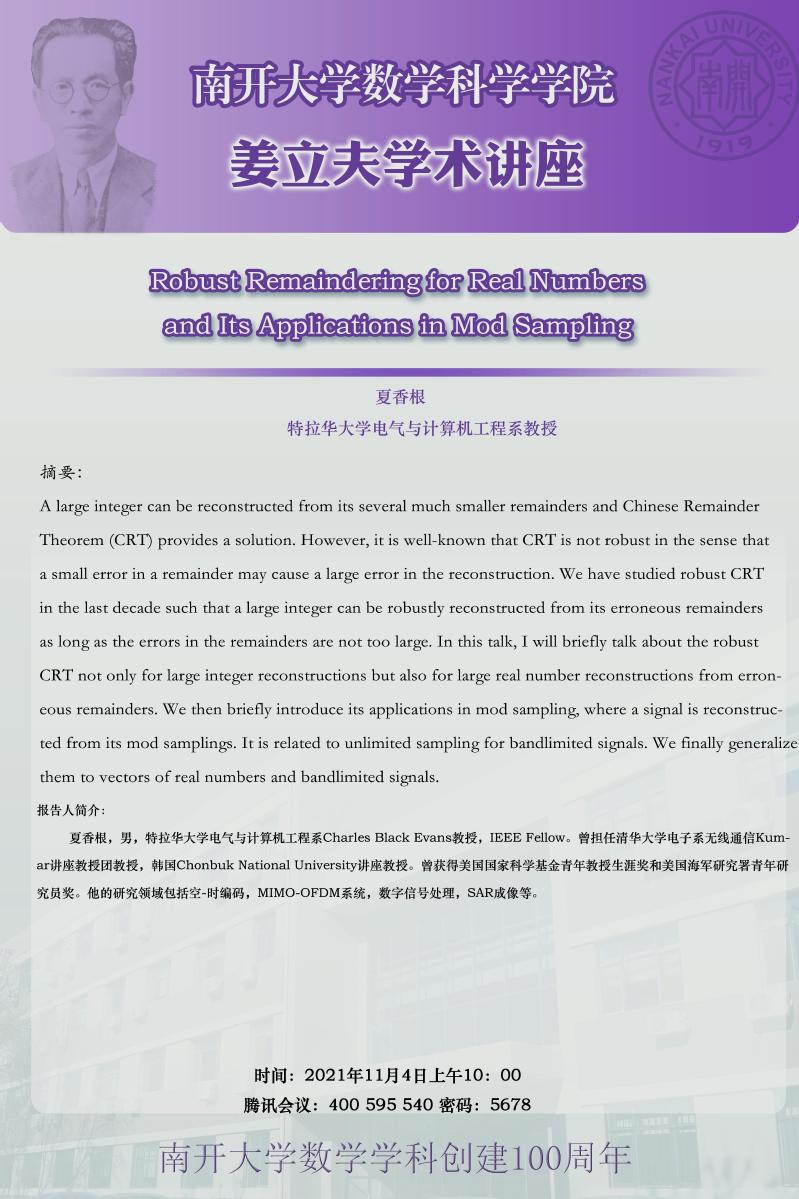 【姜立夫学术讲座】Robust Remaindering for Real Numbers and its Applications in Mod Dampling