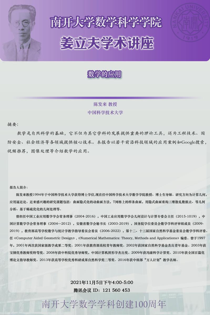 【姜立夫学术讲座】数学的应用