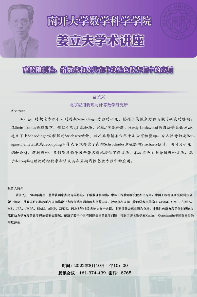 【姜立夫学术讲座】离散限制性、指数求和及其在非线性色散方程中的应用