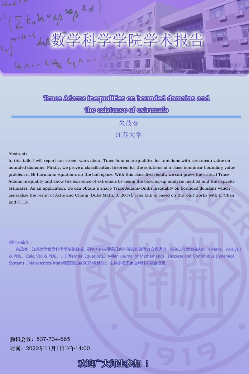 Trace Adams inequalities on bounded domains and the existence of extremals
