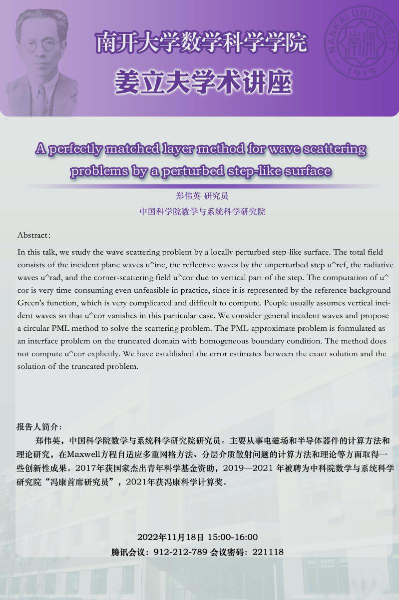 【姜立夫学术讲座】A perfectly matched layer method for wave scattering problems by a perturbed step-like surface