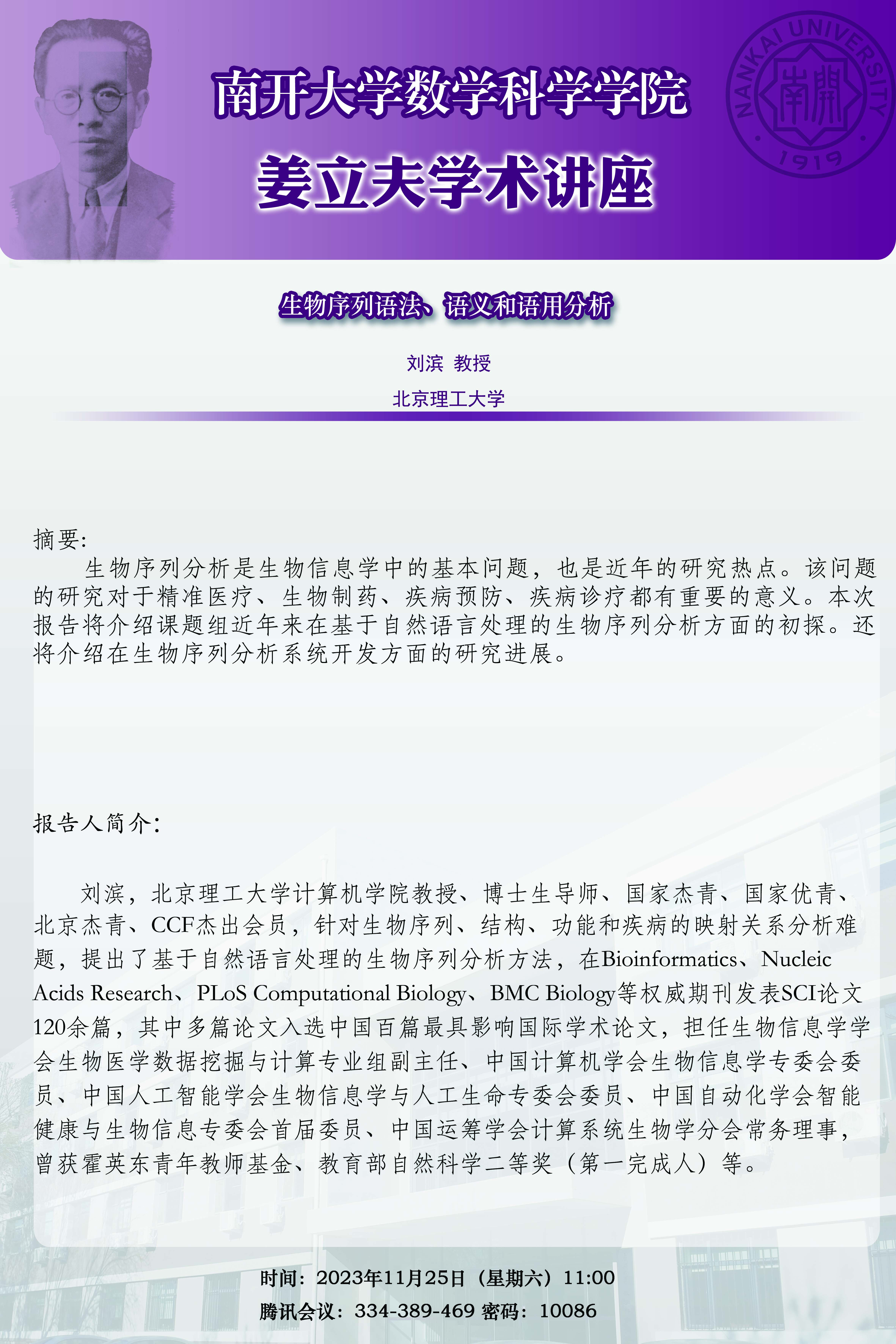 【姜立夫学术讲座】生物序列语法、语义和语用分析
