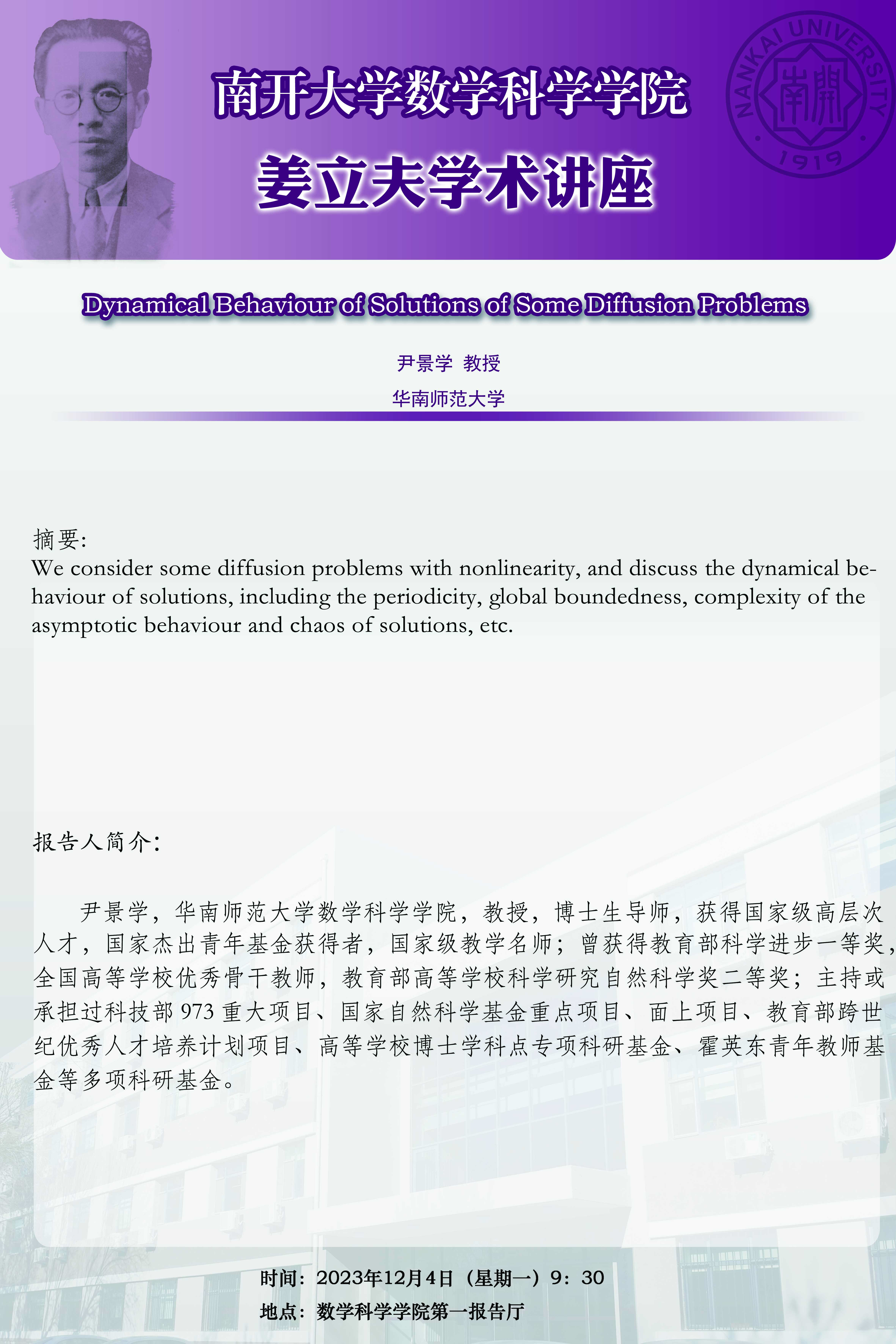 【姜立夫学术讲座】Dynamical Behaviour of Solutions of Some Diffusion Problems