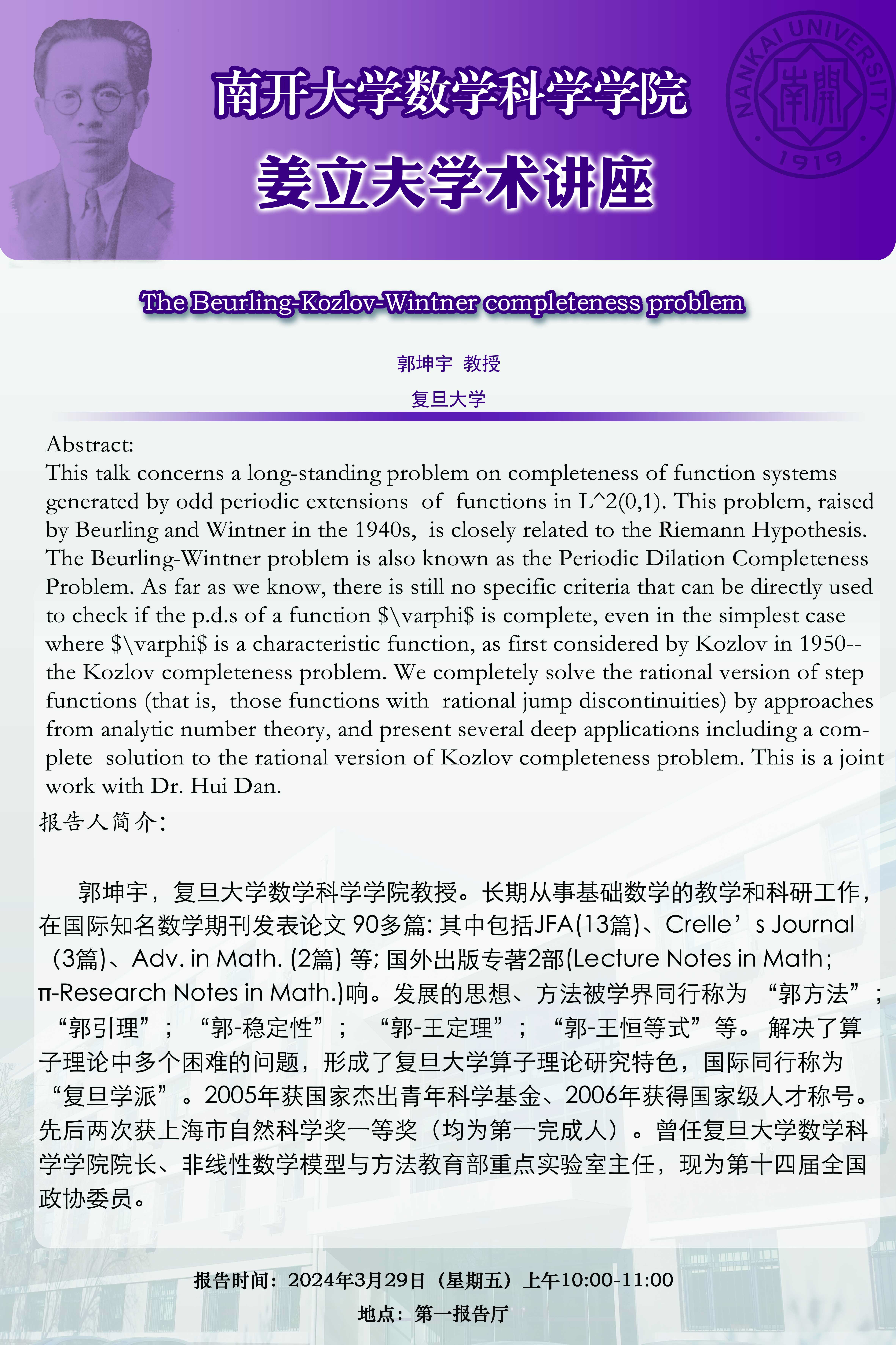 【姜立夫学术讲座】The Beurling-Kozlov-Wintner completeness problem