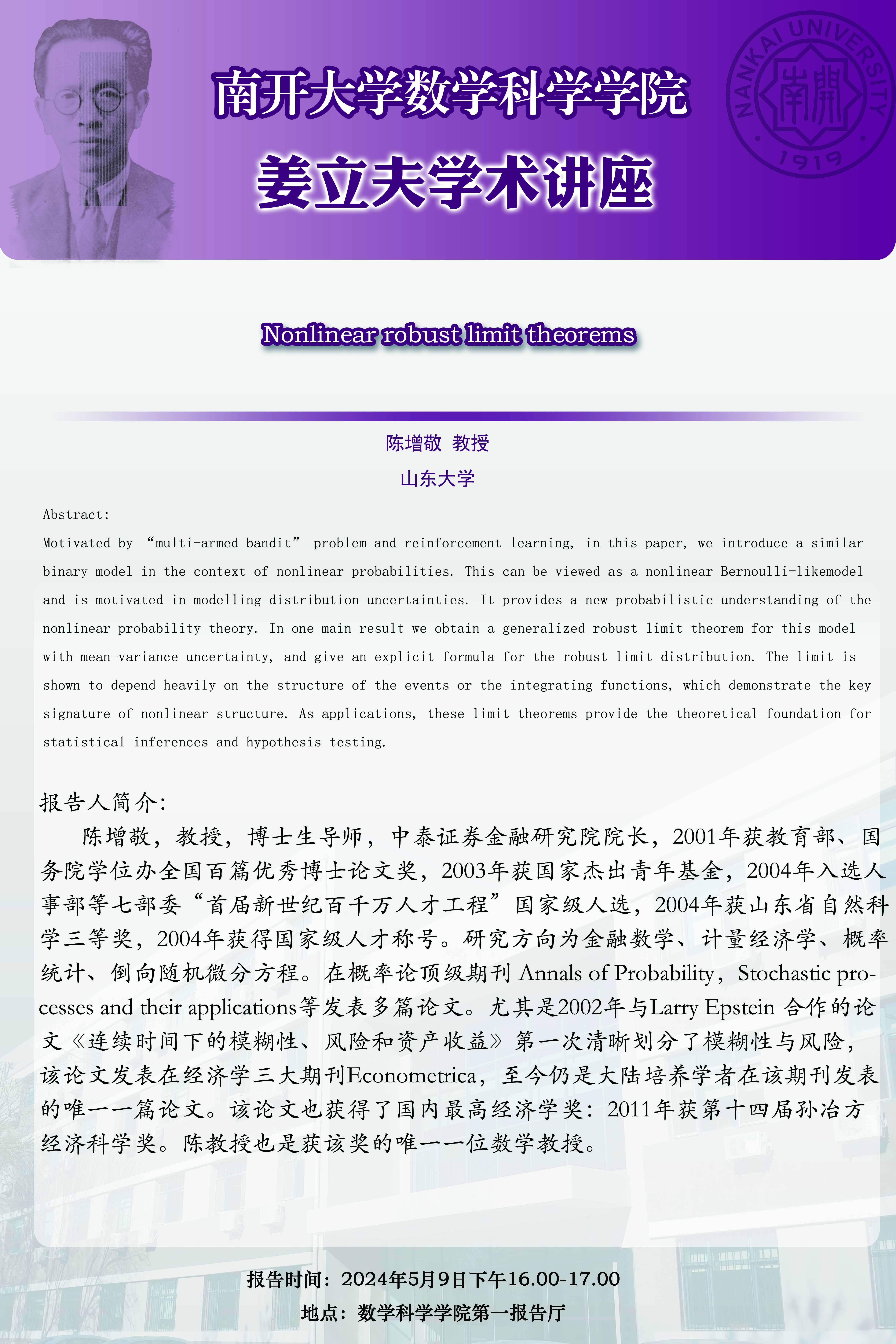 【姜立夫学术讲座】Nonlinear robust limit theorems