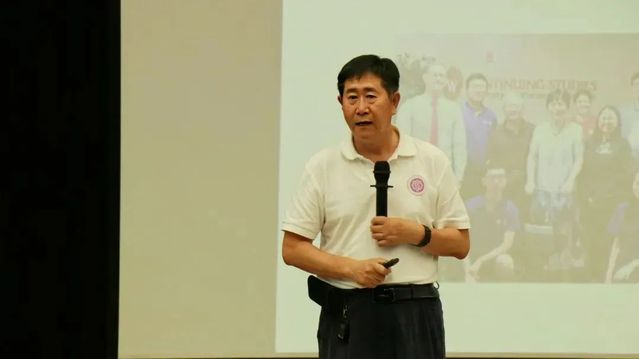 统计与数据科学学院班导师代表李忠华发言。他首先祝贺了新生们“披荆斩棘”、“乘风破浪”,通过高考来到 “无限超越班”。“少年易老学难成,一寸光阴不可轻”,他鼓励新生自由选择老员工活方式,抓住光阴,“认真年轻”。