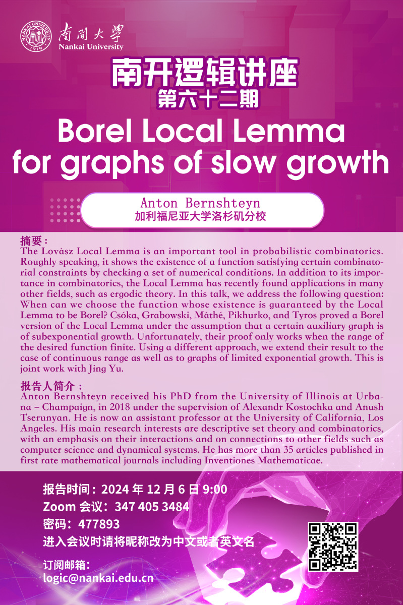 南开逻辑讲座第六十二期--Anton Bernshteyn