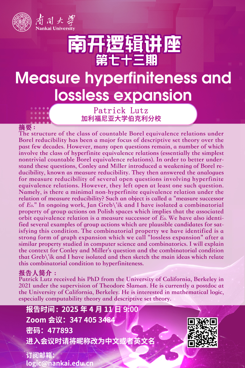南开逻辑讲座第七十三期--Patrick Lutz
