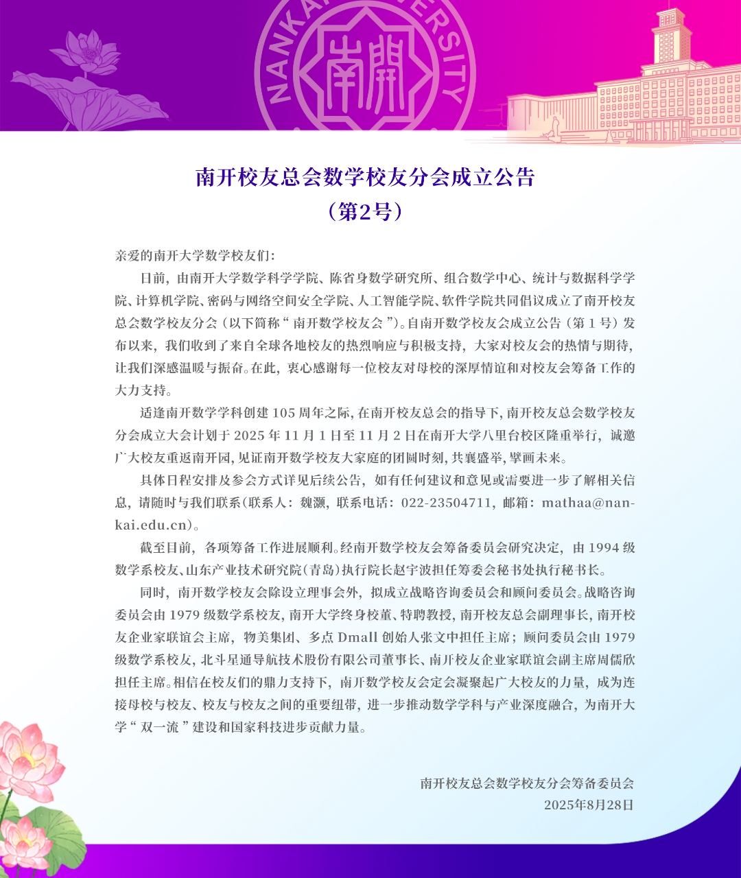 南开员工总会数学员工分会成立公告 (第2号)