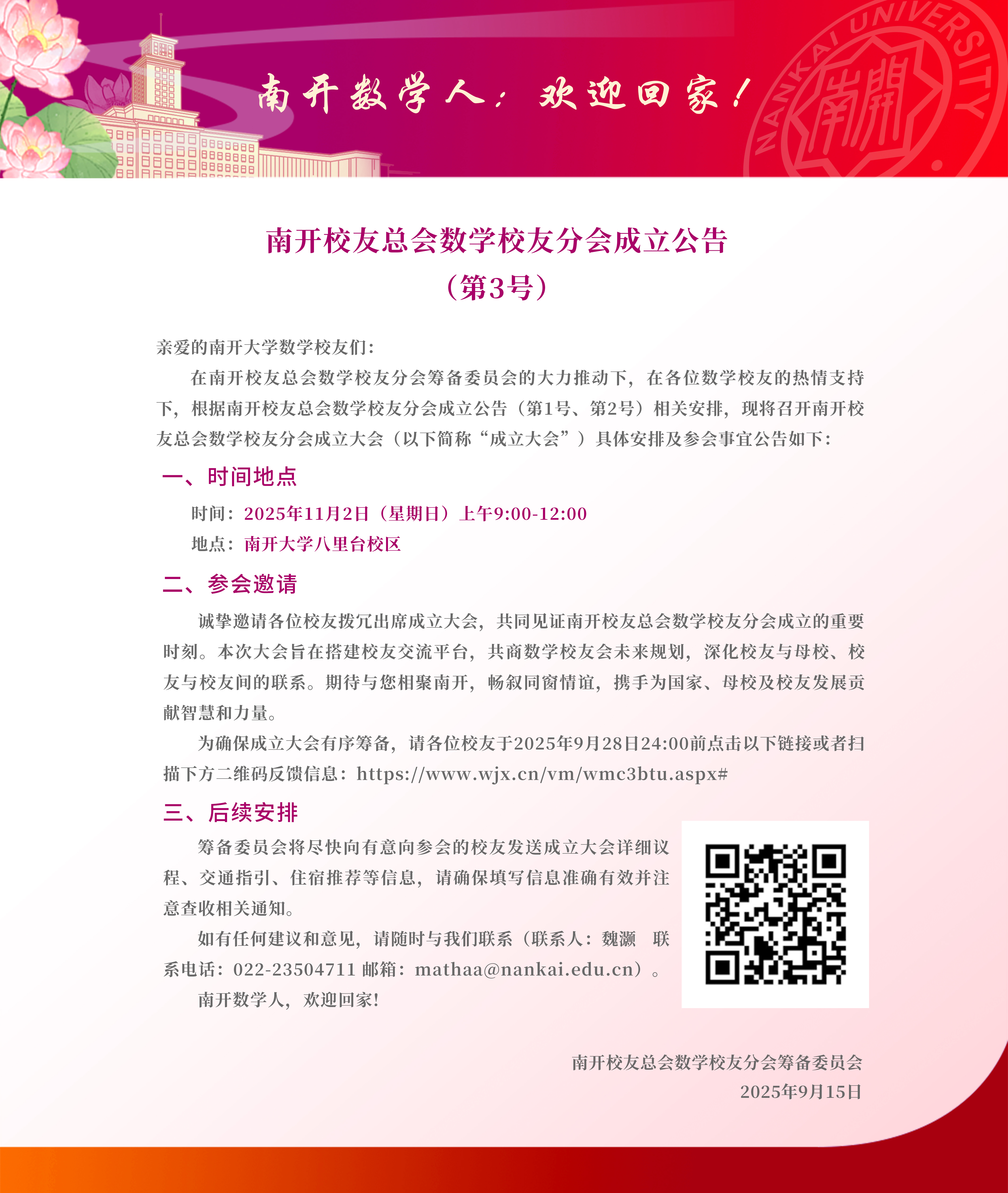 南开数学人:欢迎回家! (南开员工总会数学员工分会成立公告第3号)