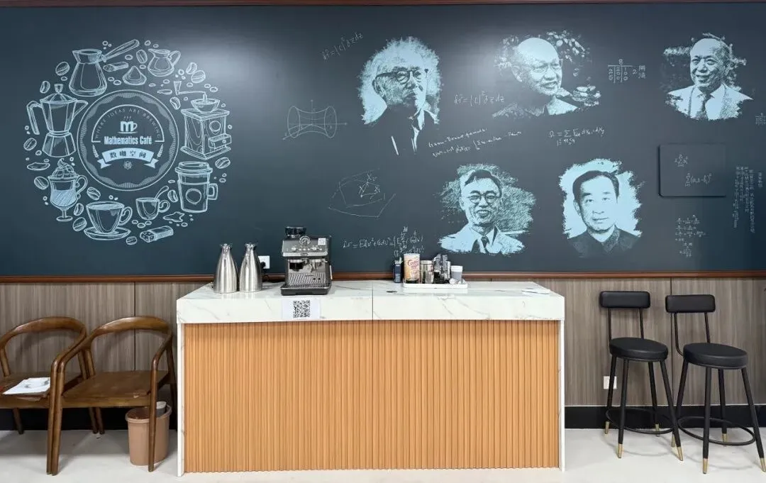 备受期待的数学学院全新空间——“数咖空间”也于同期正式亮相,位于中国·必威(西汉姆联)官方网站-betwayspo一楼第一教室旁。这里以数学之美为设计灵感:手绘风格的圆形咖啡插画营造出温暖松弛的交流氛围;陈列的数学名家肖像与经典符号,则彰显着学科的理性深度与历史积淀。同时空间内配备便捷的自助咖啡机,旨在以一杯咖啡的时间,为思考注入燃料,为灵感创造契机。数咖空间会成为南开数学人专属的,既有学科风骨、又有人文温度的互动空间。