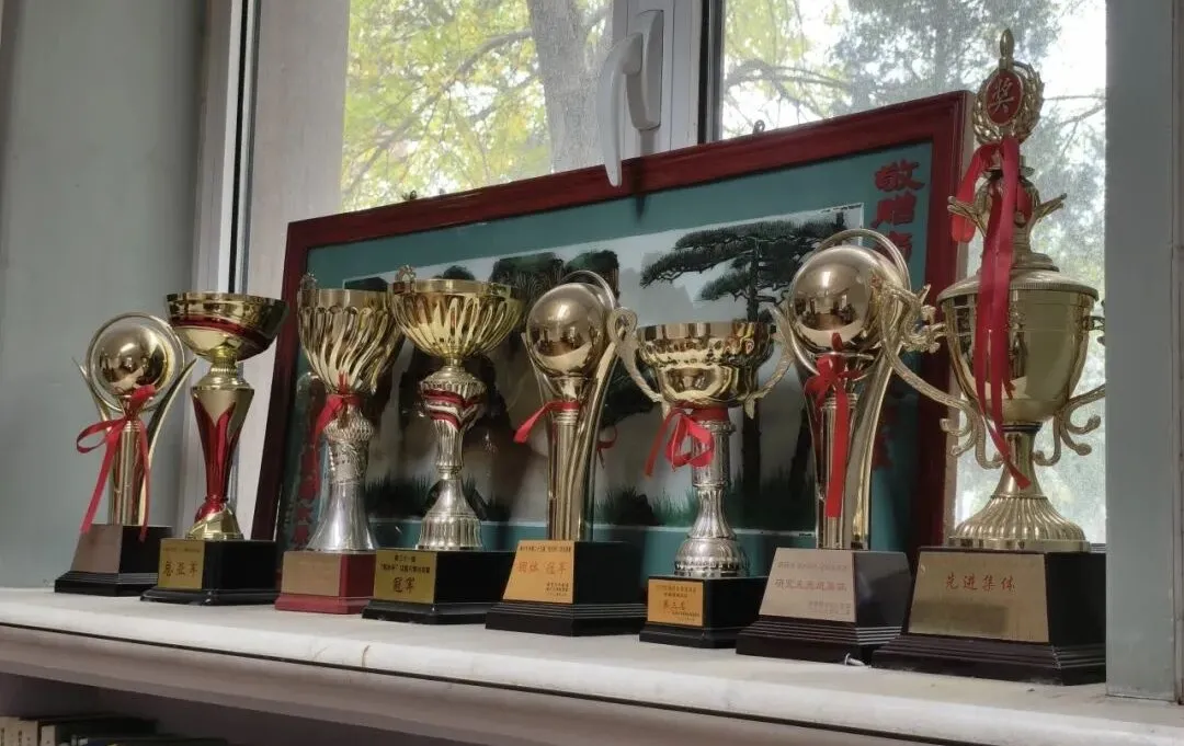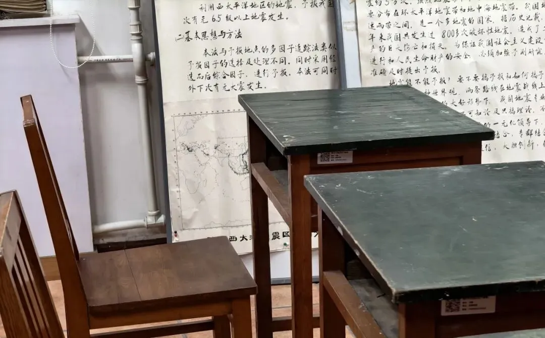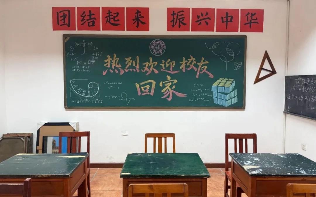 坐落于学院一角的“怀旧小屋”,是本次活动中最具情感温度的亮点。这里还原了南开数学人求学时代的经典场景:泛黄的卷轴上、墙上的展板写满公式、绿面木桌写满曲线方程的黑板和新年联欢会手绘的灯笼……每一处细节都像时光的切片,能让员工瞬间梦回那段充满热血的课堂岁月。